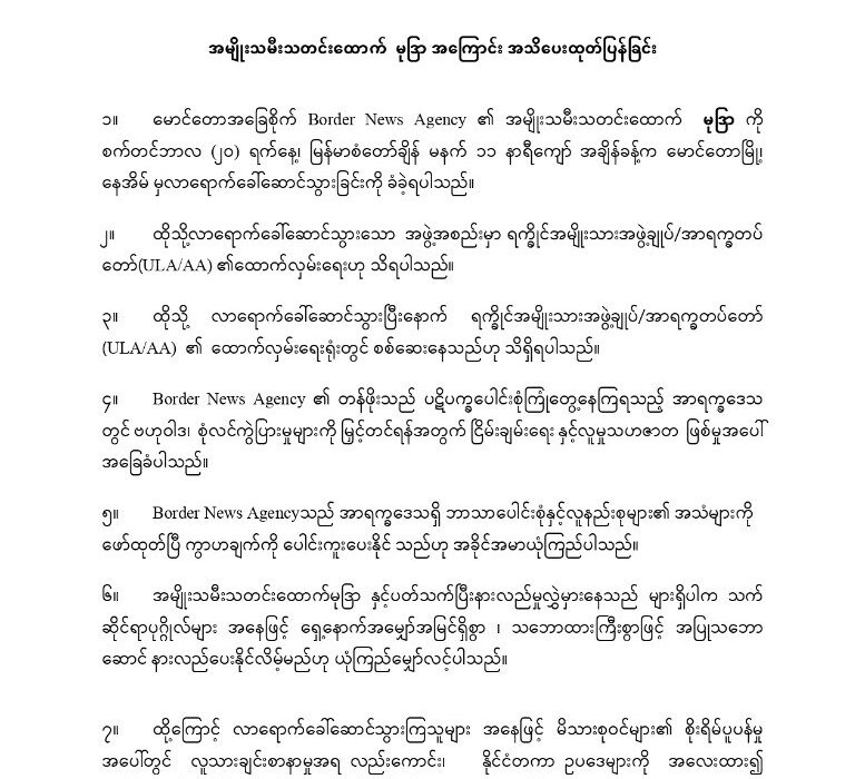 Border News Agencyအပှၤဟံးတၫ်ကစီၣ် ပိာ်မုၣ် မမူးဒြၣ်န့ၣ် ဖဲလါစဲးပထ့ဘၢၣ်(၂၀)သီအနံၤ,ကီၫ်ပယီၤနီၫ်ထိၣ် ဂီၤ (၁၁)နၣ်ရံၣ်ဘျဲၣ်ဃၣ်ဃၣ်န့ၣ် ULA/AAဟဲဖှီၣ်အီၤဖဲ၀့ၫ်မီတီ,အိၣ်ဟံၣ်အဂ့ၫ် ဖဲလါစဲးပထ့ဘၢၣ်(၂၂)သီအနံၤန့ၣ် Border News Agencyထုးထီၣ်ဘိးဘၣ်ရၤလီၤဃာ်၀ဲလီၤ.